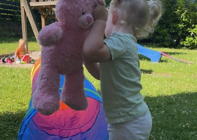 Mir ist es wichtig, dass sich jedes Kind bei mir geborgen und gesehen fühlt. Ich arbeite mit viel Herz, Geduld und Erfahrung – und sehe jedes Kind als kleines, einzigartiges Wesen mit eigenen Bedürfnissen und Talenten. Durch feste Rituale, kreative Angebote, Bewegung, frische Luft und liebevolle Begleitung entstehen stabile Beziehungen und ein sicherer Rahmen für Entwicklung.